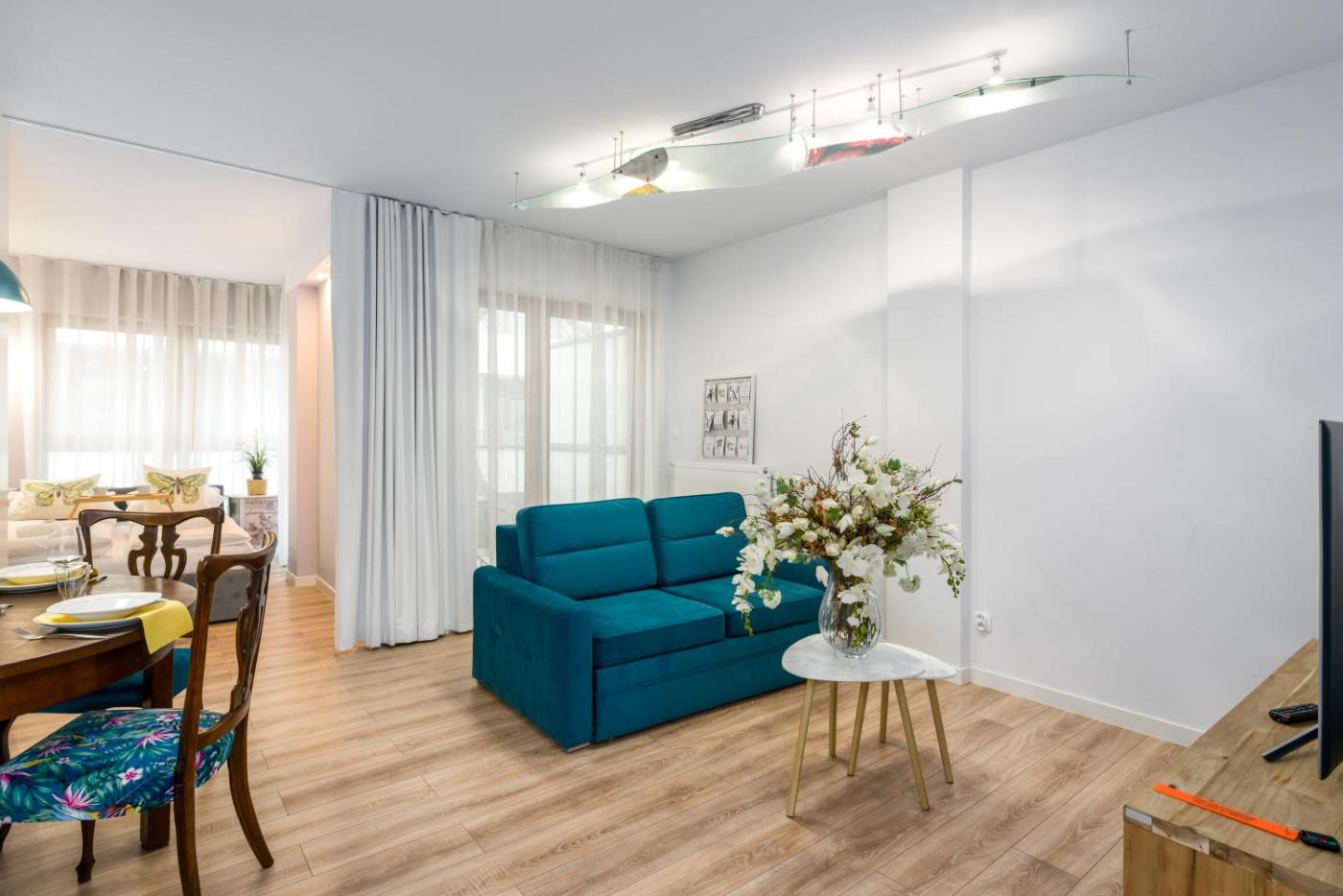 Apartament z 1 sypialnią. This apartment is comprised of 1 living room, 1 separate bedroom and 1 bathroom with a walk-in shower and free toiletries. In the fully equipped kitchen, guests will find a stovetop, a refrigerator, a dishwasher and kitchenware. Featuring a balcony with ancourtyard view, this apartment also offers a washing machine and a flat-screen TV. The unit offers 2 beds. Apartament - 5 osobowy. Powierzchnia pokoju ok.: 35 mkw.
